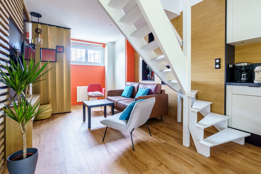 Le logement | Capacité d’accueil : 5 Salles de bain : 1 Lit : 2 lits 140x190 - 1 lit 90x190 | Arrivée : entre 16:00 et 22:00 Départ : 11:00 Type de logement : Appartement duplex |